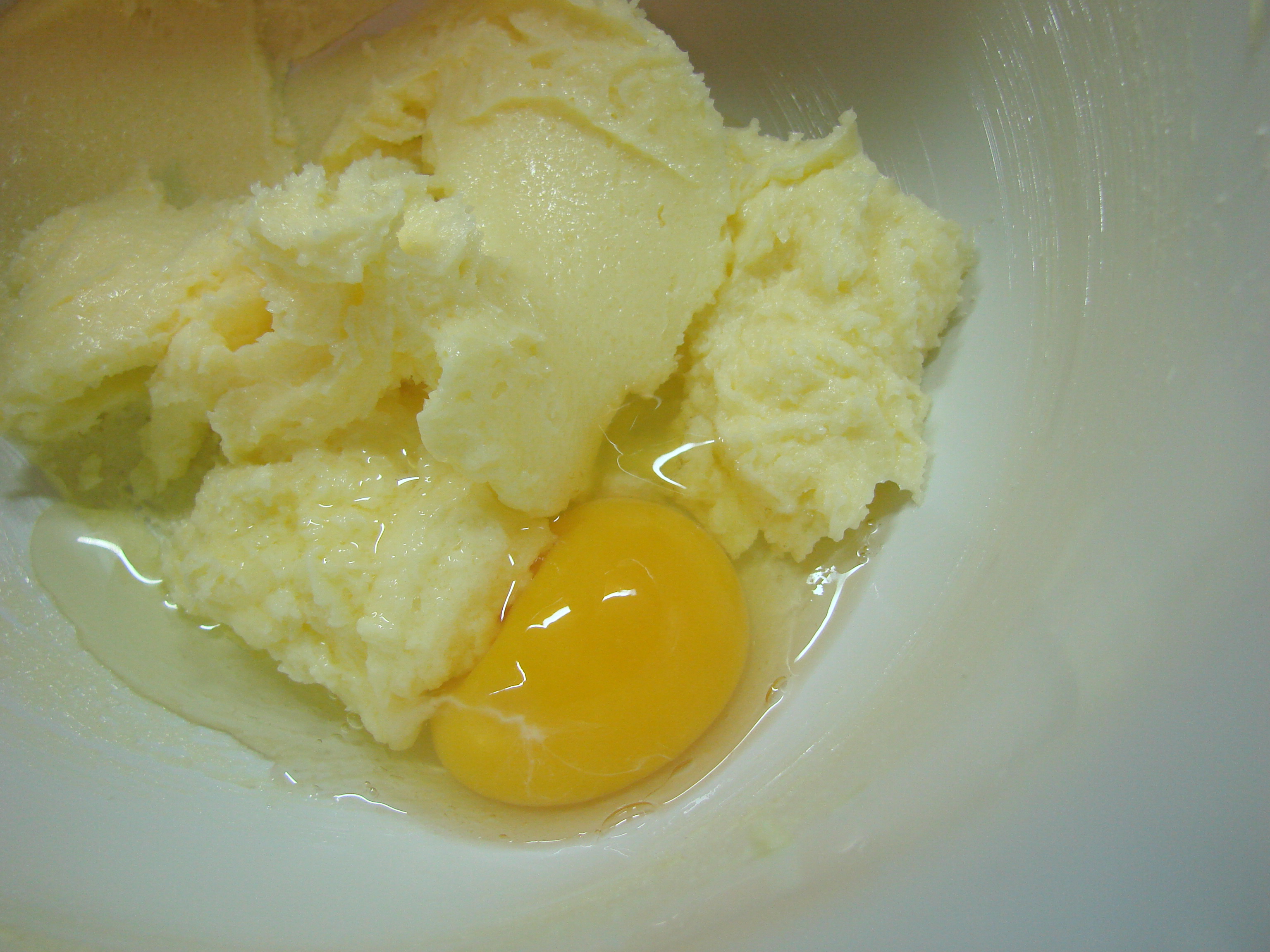 Þeyta smjör og sykur vel saman