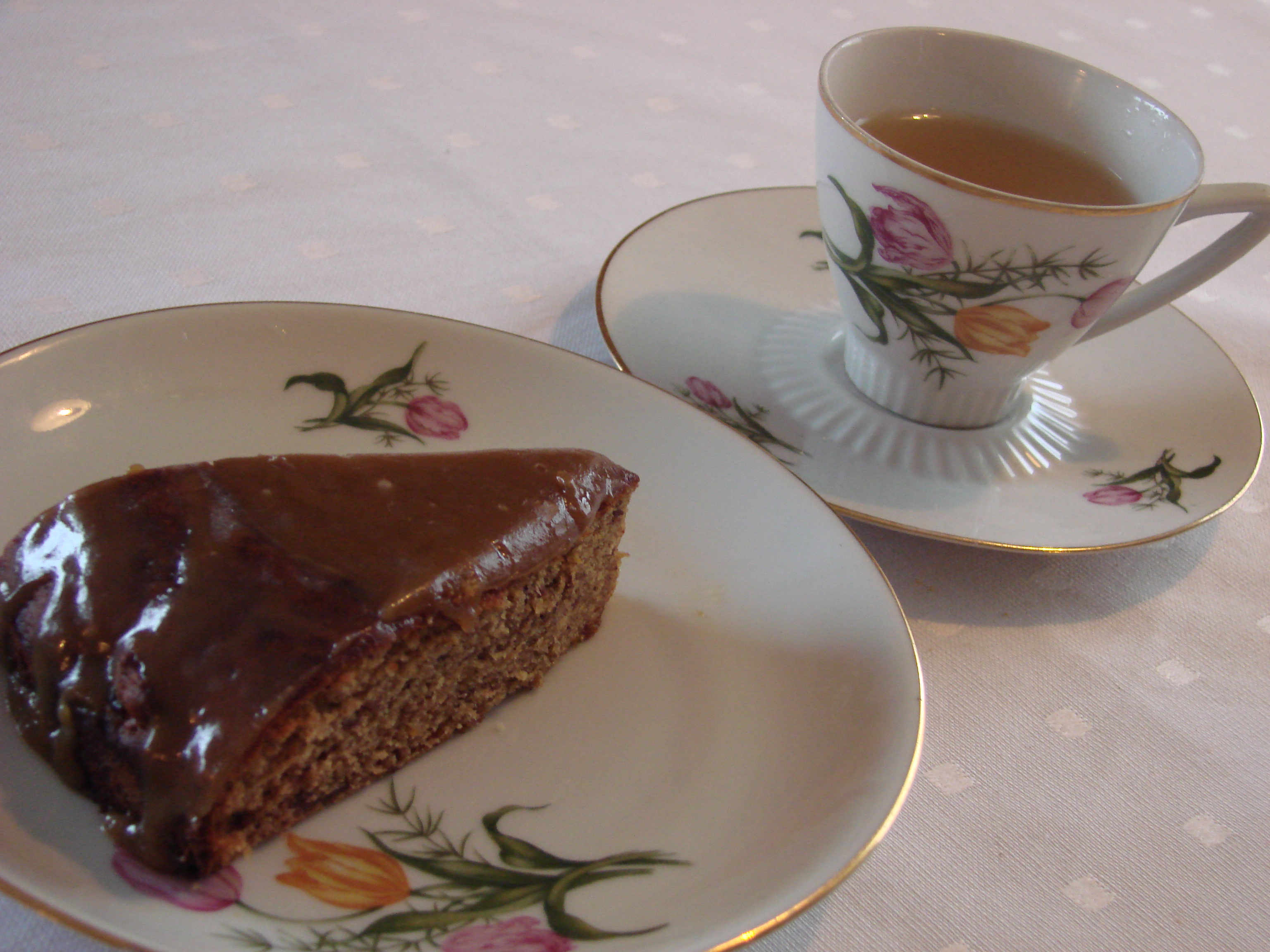 smávegis af sósunni er smurt yfir volga kökuna (gera það nokkrum sinnum)