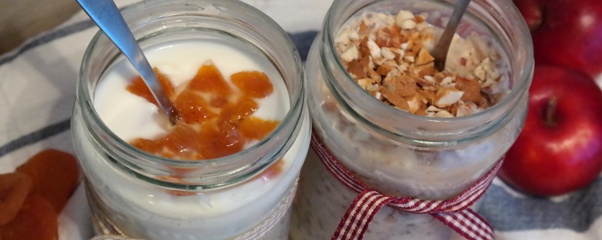 Næsta morgun skal hrært vel í grautnum. Jógúrtið, hunangið og apríkósurnar settar ofan á grautinn áður en hann er borinn fram. Endilega bæta við mjólk ef grauturinn er of þykkur.