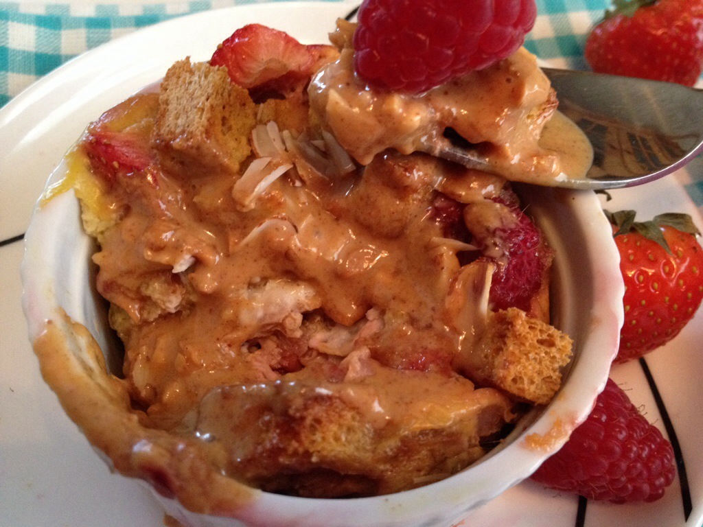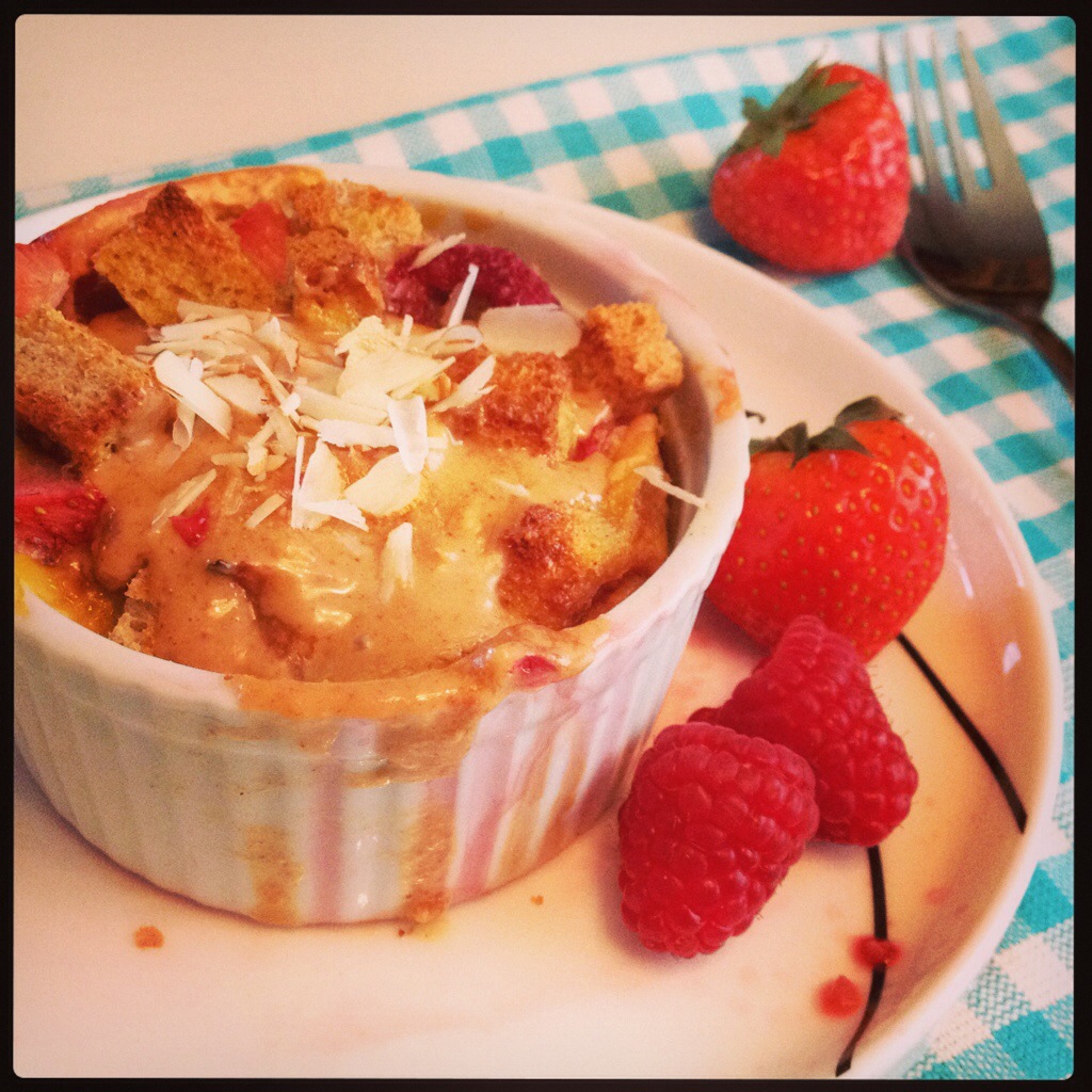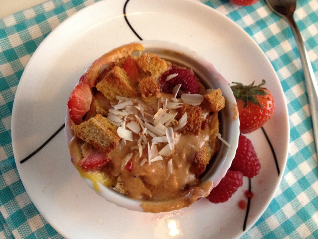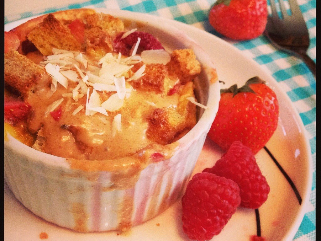 Því næst eru eggin, mjólkin, vanillan og kanillinn hrærð vel saman og hrærunni svo hellt yfir brauðið og berin. (muna að hella bara rólega þar sem það tekur smá tíma fyrir brauðið að draga eggjahræruna í sig 🙂 )