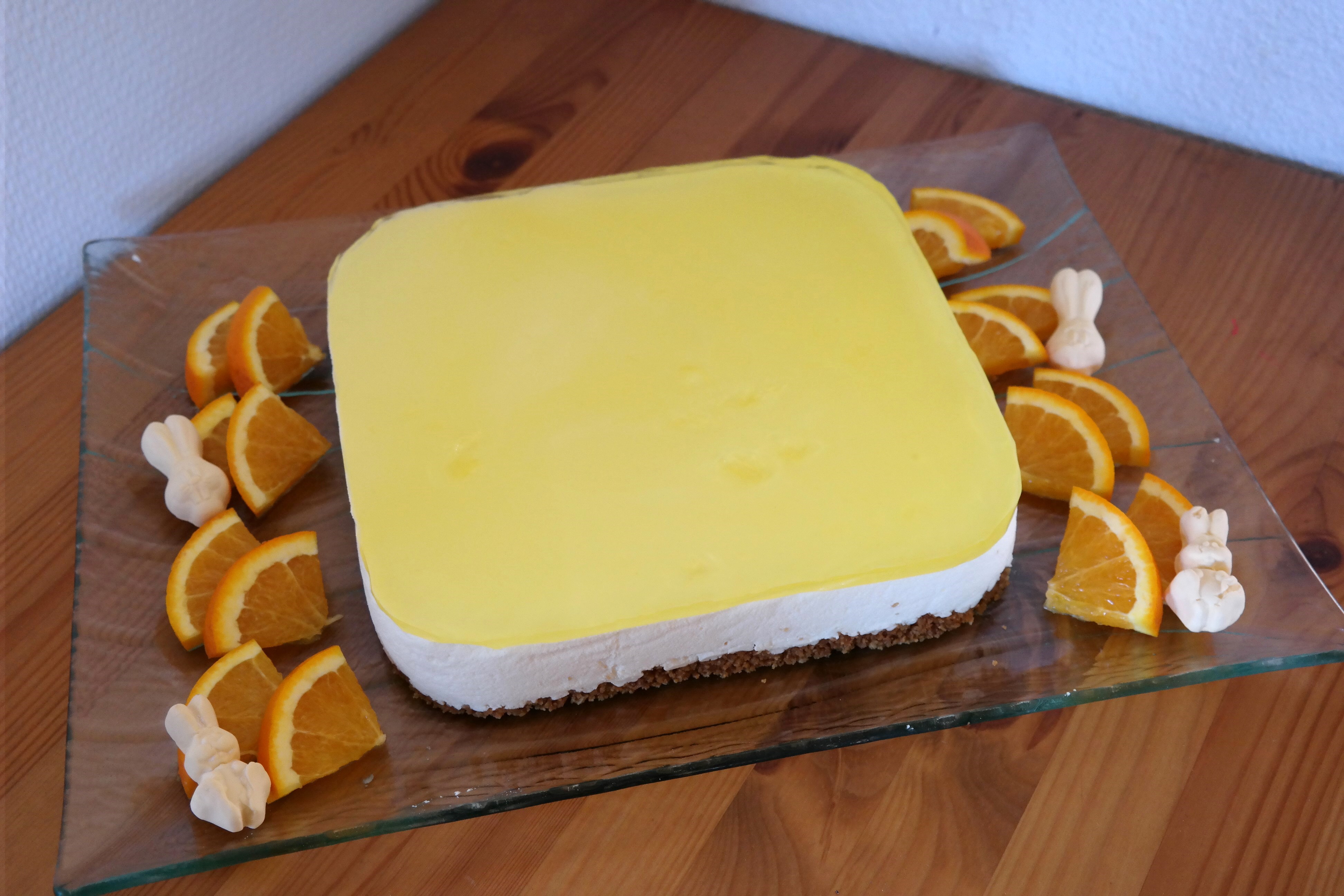 Blanda kexinu við brædda smjörið. Setja kökuhring (26cm) beint á passlegt fat/kökudisk. Mæli með að setja smjörpappir innan í kökuhringinn svo auðveldara sé að ná kökunni úr forminu. Kexið er þá þrýst niður í botninn, alveg að kantinum á kökuhringnum. Kælt (helst í ísskáp)