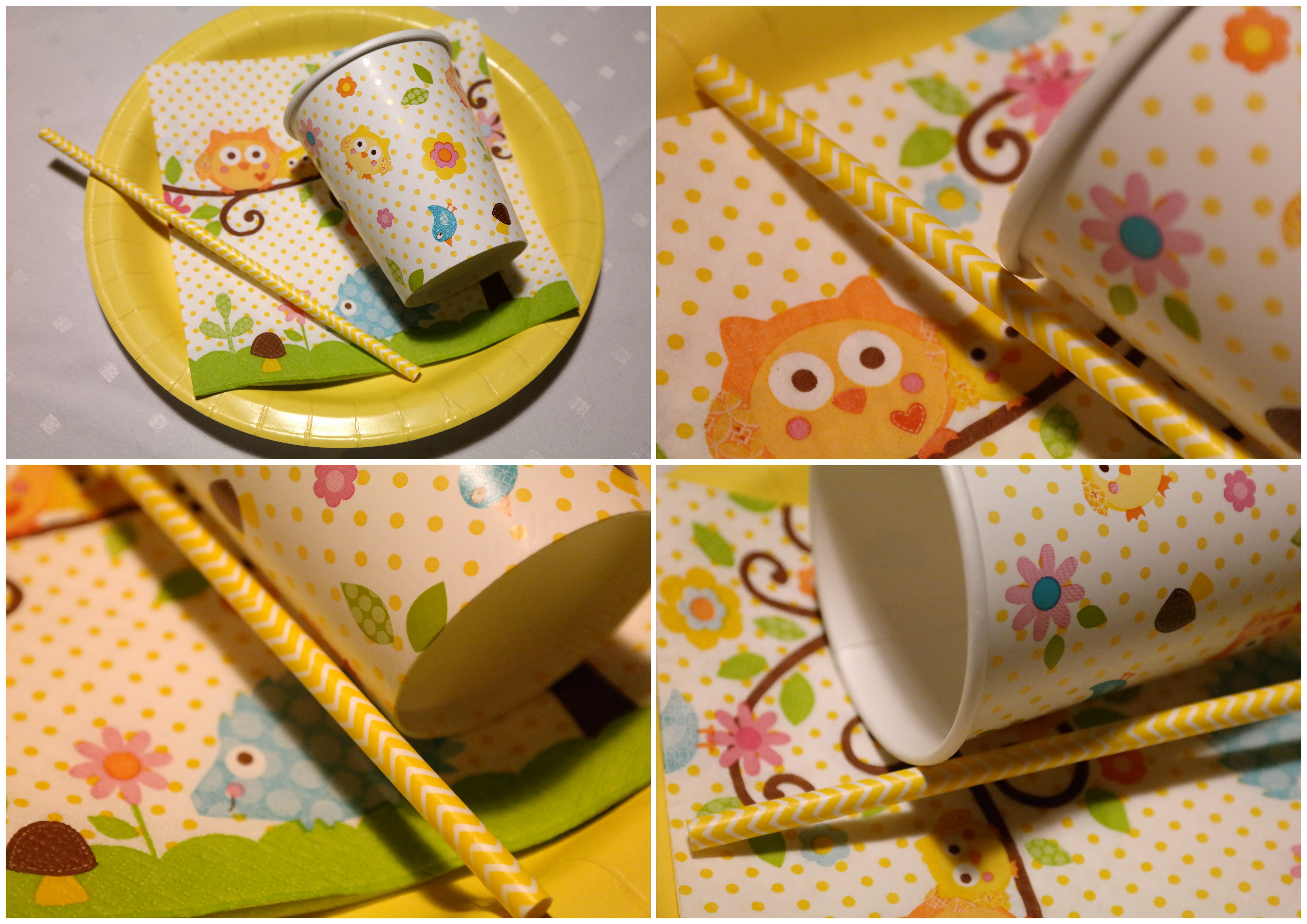 Pappadiskar, glös, servíettur og rör pantaði ég frá PartyDesign