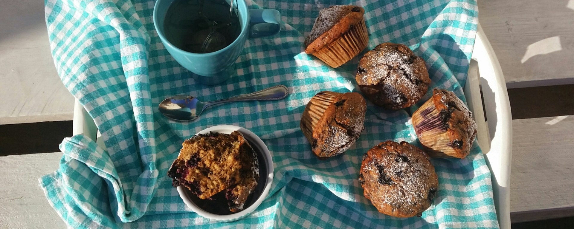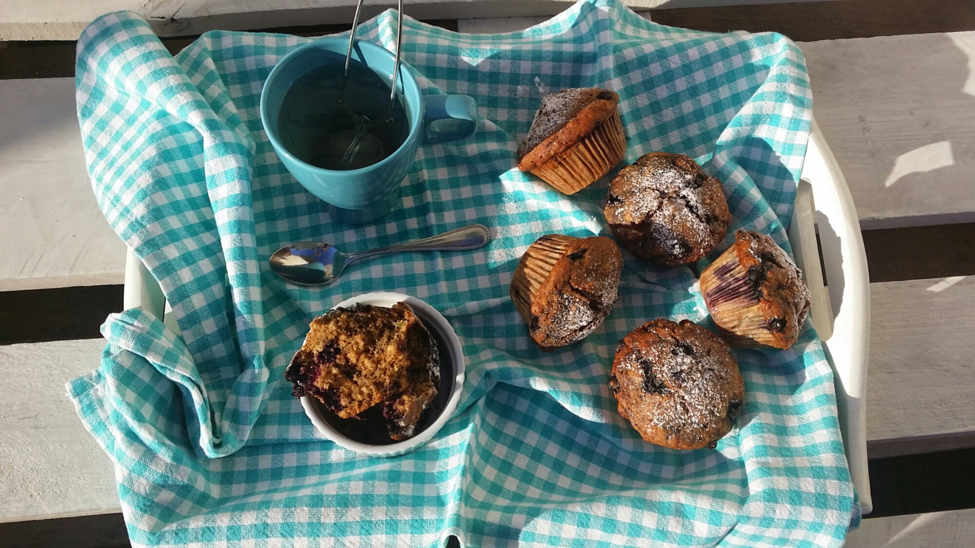 Hræra þessu varlega saman, alls ekki hræra of mikið þar sem speltið er mjög viðkvæmt. Hræra síðan varlega valhnetukjörnunum og bláberjunum. Baka við 180°c í 23 – 27 mínútur. Kæla í muffins brettinu í 5 – 10 mínútur og leyfa þeim svo að kólna alveg á grind í að minnsta kosti 15 mínútur.