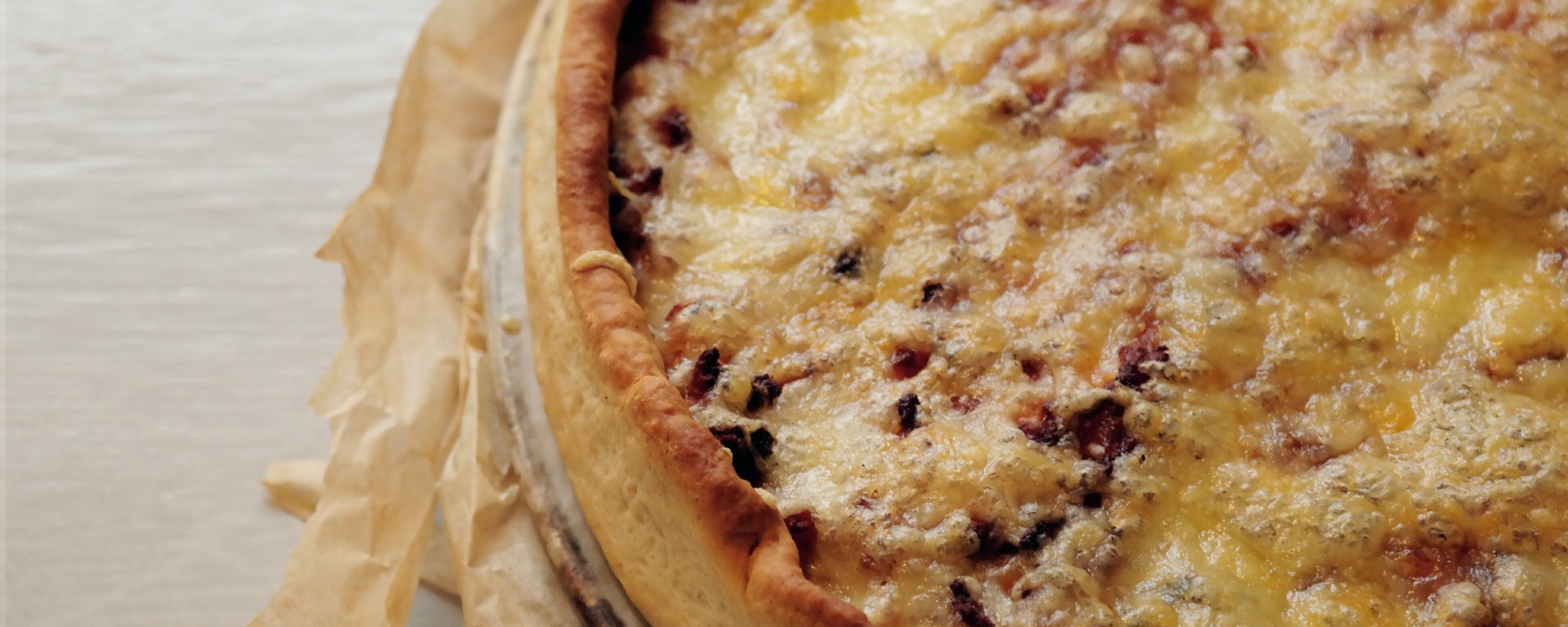 Pæið er því næst hitað í 200°c heitum ofninum (osturinn er settur á seinna) í ca. 20 mínútur og svo er ostinum stráð yfir og hitað í 10-15 mínútur til viðbótar.