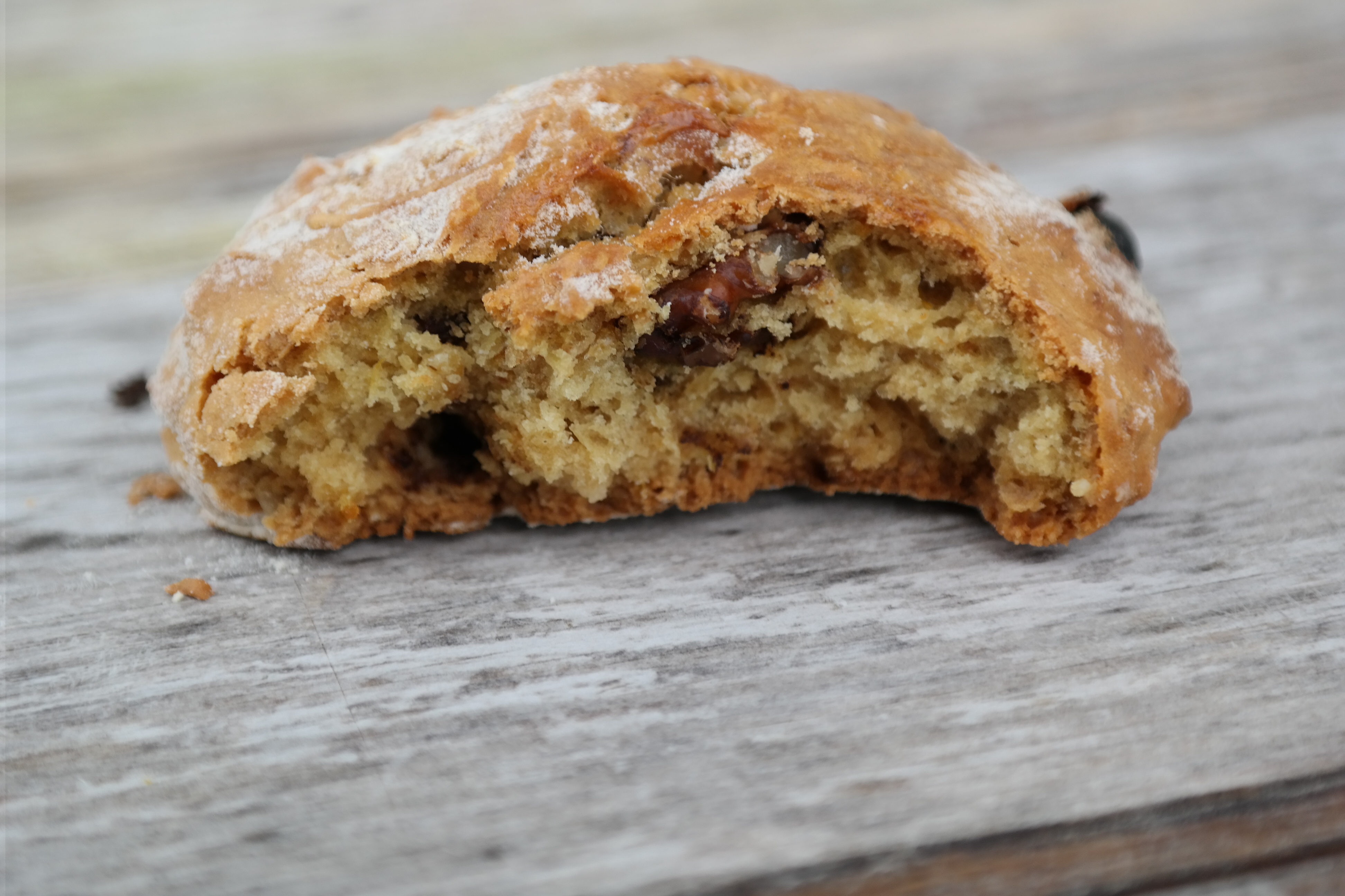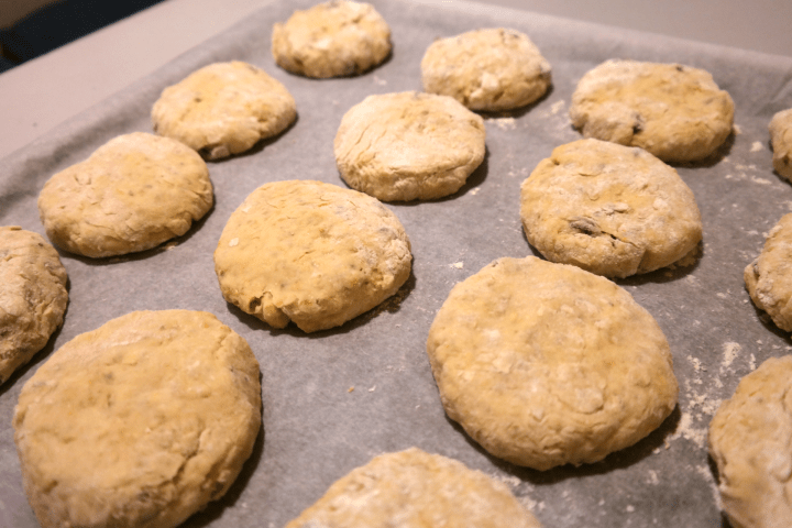 Ég hef svo lengi sem ég man verið yfir mig ástfangin af enskum skonsum og fór ófáar ferðir í bakaríin í höfuðborginni í leit af english sconesss 😁. Fyrir nokkrum árum byrjaði ég að prufa mig áfram að baka mínar eigin, en fannst ég aldrei hitta naglann á höfuðið… þar til nú! Ég á ekki orð yfir hvað þessar scones eru ljúffengar og hvað samsetningin af appelsínum, hnetum og rúsínum/súkkulaði er mögnuð. Ég velti þeim uppúr smá hveiti áður en ég setti þær á bökunarplötuna og loks penslaði þær með eggi sem gefur þeim svona flott rustic look. Maður minn þessar bara verðið þið að prufa!