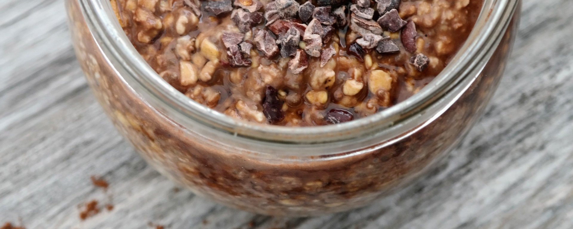 Næsta morgun er hrært vel í grautnum og kakaóanibbunum stráð yfir.